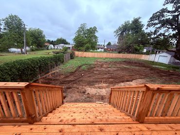 Here's the "during" view of an inground pool build. Construction on these pools can vary depending on the size, shape, design, etc., however, there's always going to be a footing day!