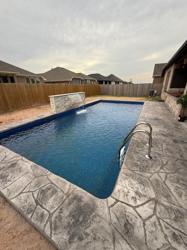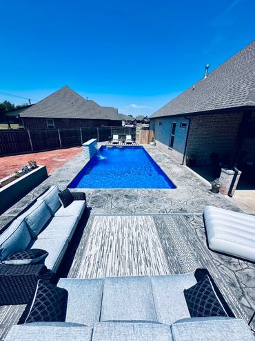 Absolutely one of our favorite builds! This pool is brought to you by the Horn Family! We love the way this pool turned out. If you think it's beautiful during the day, you should see it in the evenings with the color changing LED lights on full display!