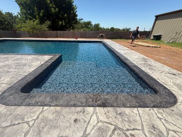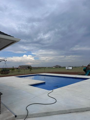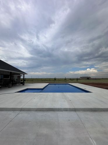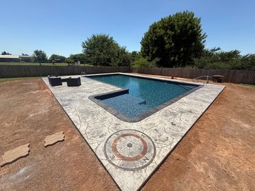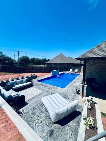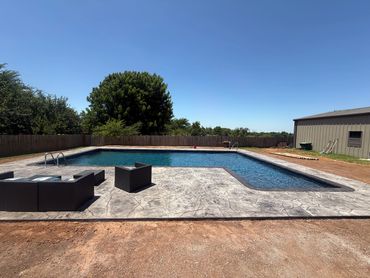 This particular customer had a lot of trouble with his pool build. He began building his pool with another company. But, as soon as they got his money, they ran, leaving his entire backyard a nightmare. That's when he called us to come out and fix everything. In just 8 days, the Grimes Family had a pool! A very cold one! This pool was built in Lawton, OK.